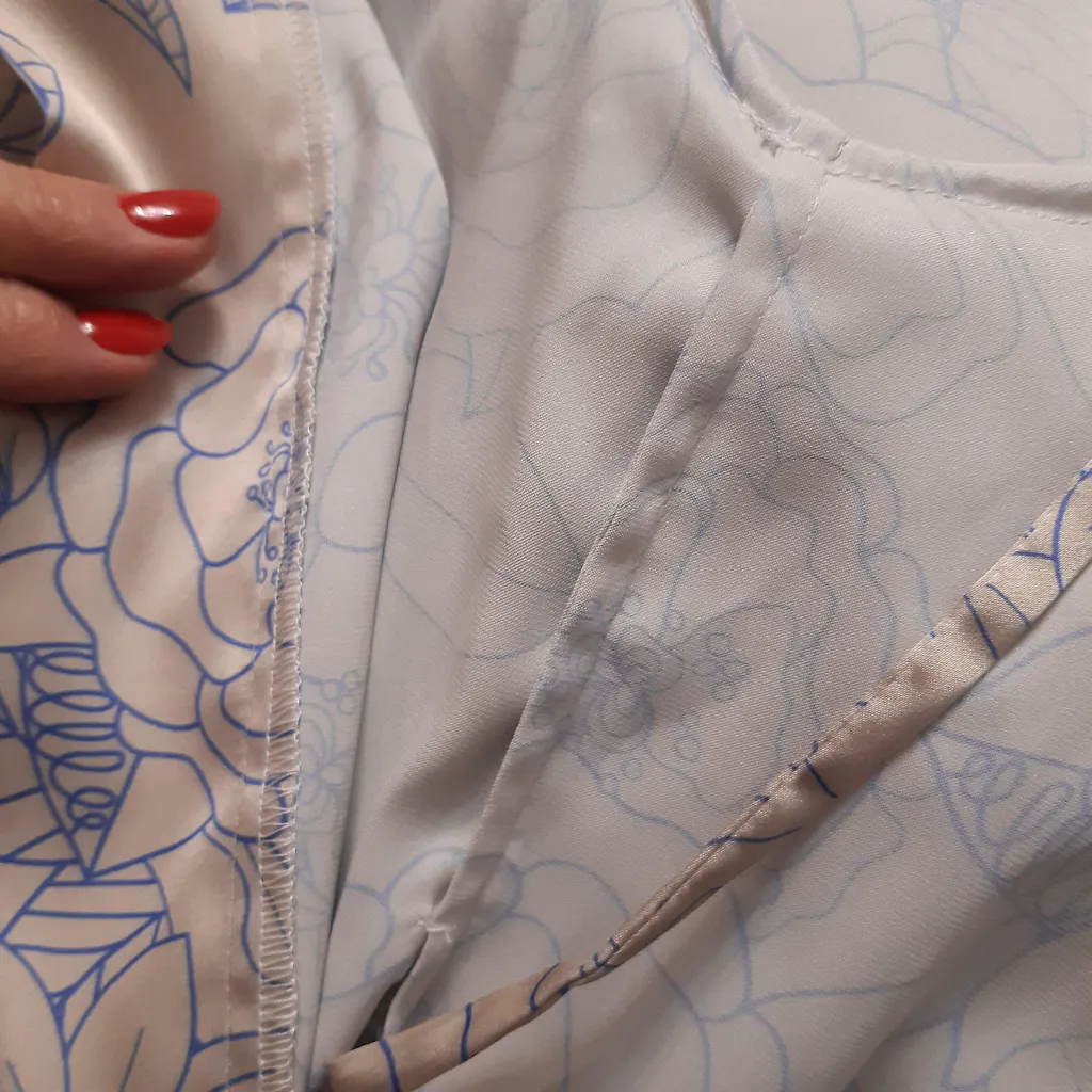 Виготовлений із матеріалу з візерунком кімоно, цей халат додає нотки вишуканості будь-якій події. Його ніжна та текуча структура ідеально підходить для відпочинку вдома або підготовки до особливого дня. Додайте його до своєї колекції та відчуйте комфорт і якість на собі.